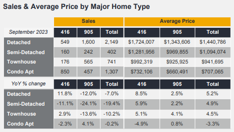The impact of high borrowing costs, high inflation, uncertainty surrounding future Bank of Canada decisions and slower economic growth continued to weigh on Greater Toronto Area (GTA) home sales in September. However, despite the market being better-supplied with listings, the average selling price was up year-over-year.
